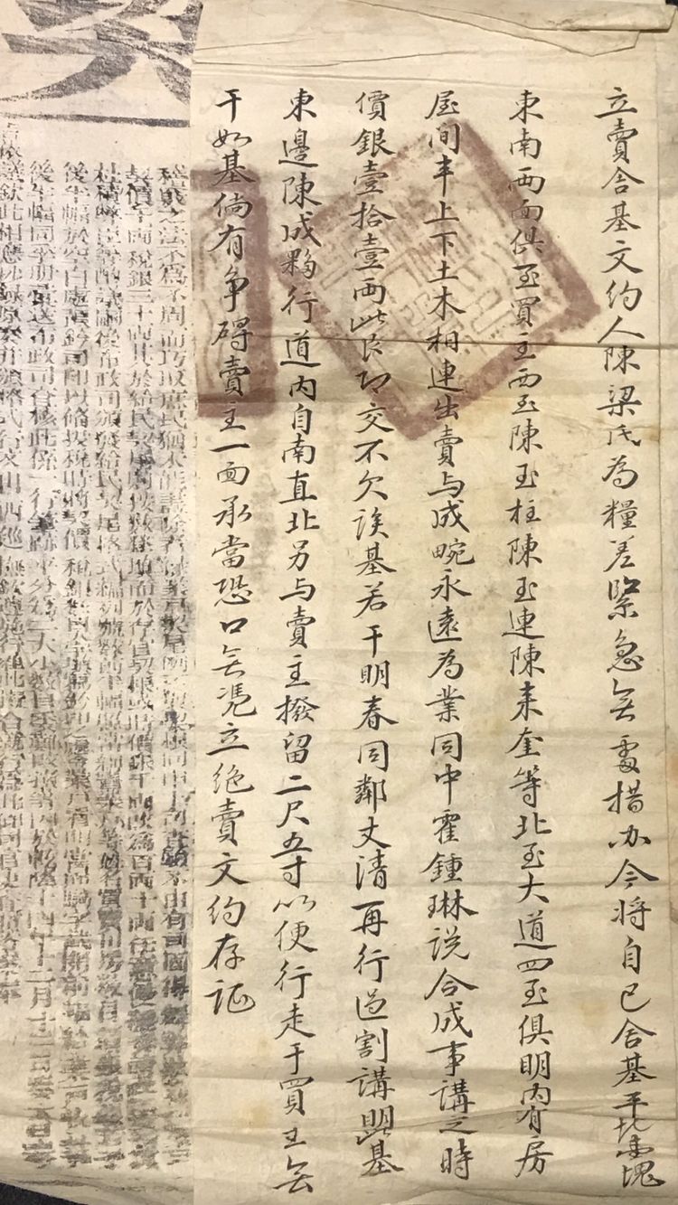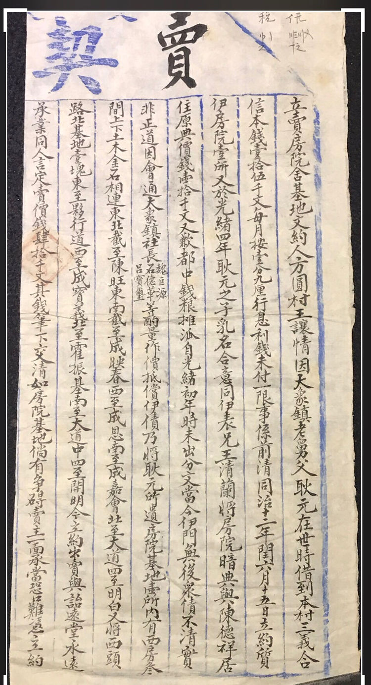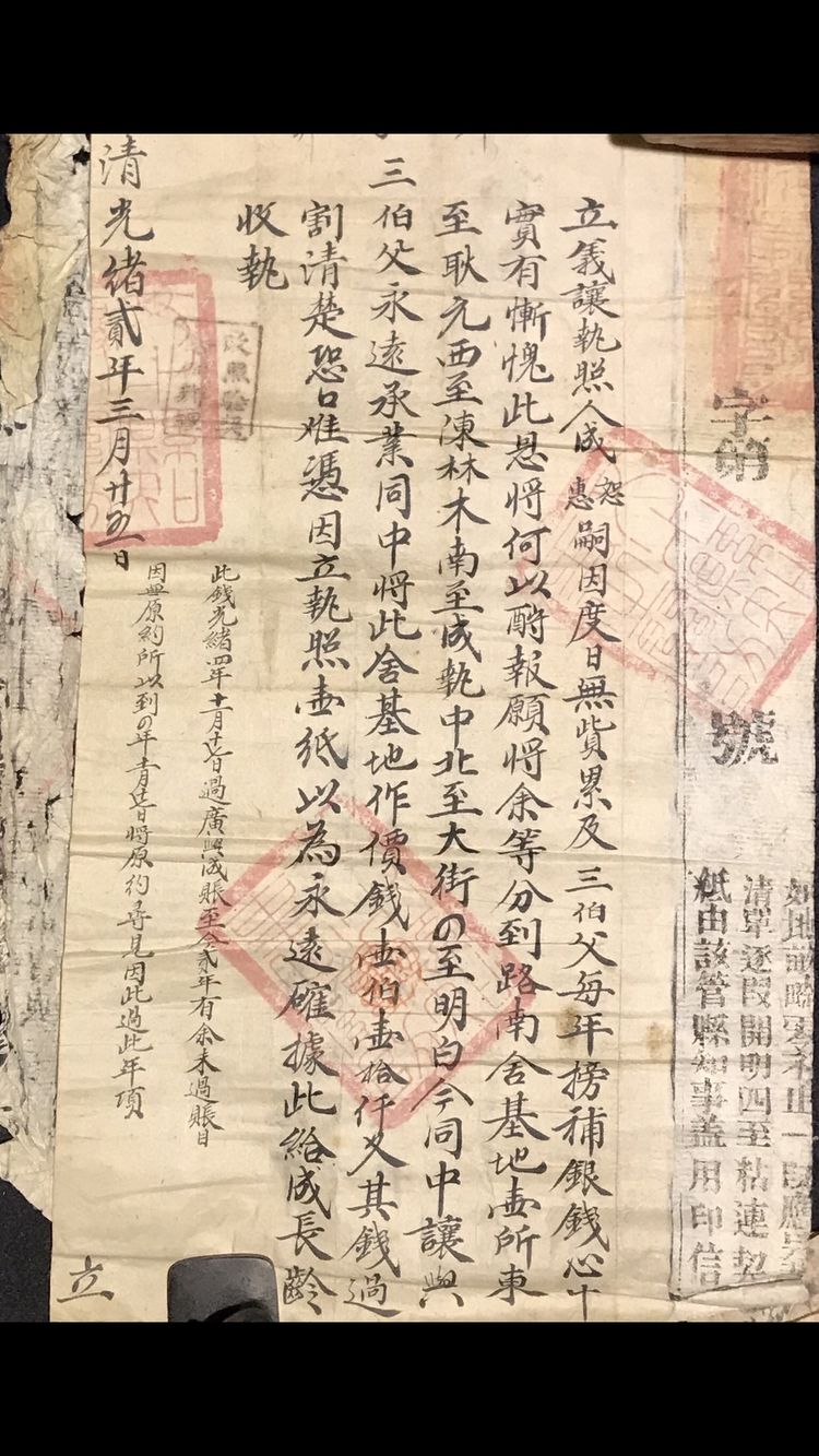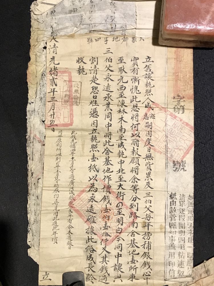 詒遠堂三祖父舉人文林郎成長齡購房地契,至今則天紀念館留有他撰文書丹的碑文
